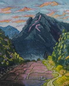 私は地球各地の山岳風景に触れ、そこに暮らす人々の臭いを画面に取り込みながら、光あふれる風景、風の激しく荒れ狂う気象を画面に描いてきた。